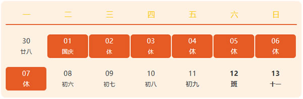 10月1號至10月7號,共計7天,9月29號(星期天),10月12號(星期六)正常上班。