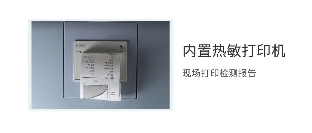 無(wú)需外接打印機(jī),內(nèi)置熱敏打印,現(xiàn)場(chǎng)打印檢測(cè)報(bào)告,機(jī)器操作更方便
