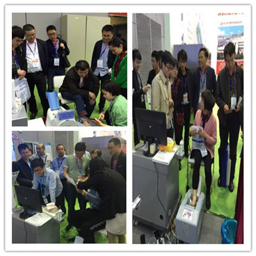 科進(jìn)展臺(tái)還吸引了不少國(guó)外專業(yè)觀眾,國(guó)外客戶對(duì)我公司的新款M型TCD儀表示出了極大興趣,并親自體驗(yàn)。該款產(chǎn)品采用模塊化設(shè)計(jì),主機(jī)重量?jī)H2KG,攜帶使用十分方便,也便于出口運(yùn)輸。外國(guó)客人還體驗(yàn)了公司最新研發(fā)的OSTEOKJ3000超聲骨密度儀,該產(chǎn)品軟件包含了中國(guó)人、歐洲人、非洲人、中東人等多個(gè)人種的人群骨質(zhì)數(shù)據(jù)庫(kù),測(cè)試數(shù)據(jù)穩(wěn)定可靠,可應(yīng)用于全球大部分地區(qū)。