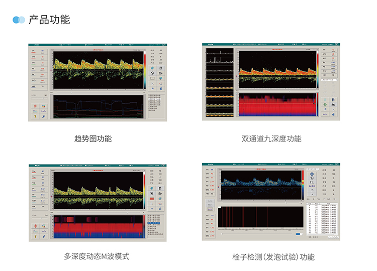 支持單通栓子與雙通栓子檢測模式,在血管選擇區(qū)還可選擇進(jìn)行屏氣試驗與腦死亡試驗